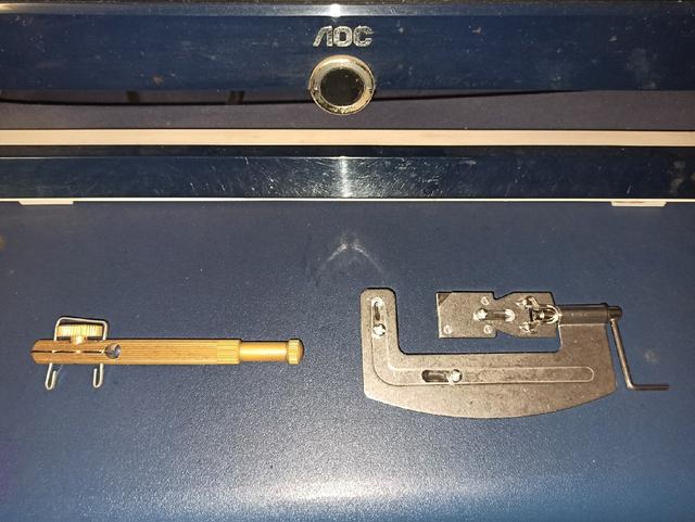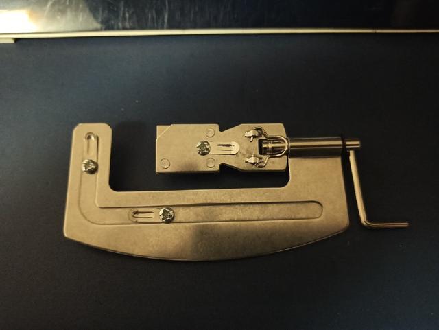 先来说说这一种,比较大众。我觉得大众话的原因应该是具备打结器的功能。全金属材质,竖条状并配有螺纹增加手感摩擦力,尾部可旋转出直柄针子线打结器。中间长缝隙可通过金属旋钮调整缝隙大小,尾部是打结器,头部的缝隙就是鱼钩固定器。把鱼钩的钩门放入露出全部钩柄,旋紧旋钮固定后即可开始操作。那么问题来了,由于是金属材质,夹紧鱼钩的同时会对鱼钩造成一定的损害,袖钩还好一点,伊豆鱼钩钩尖有一定角度,在夹具中较难固定(自动绑钩器不存在这个问题),必须加大旋钮力度,对鱼钩损害更大。尝试多次想留相同线头以求绑出长度相同的子线,就一句话
