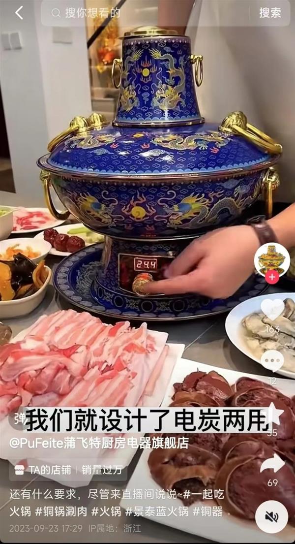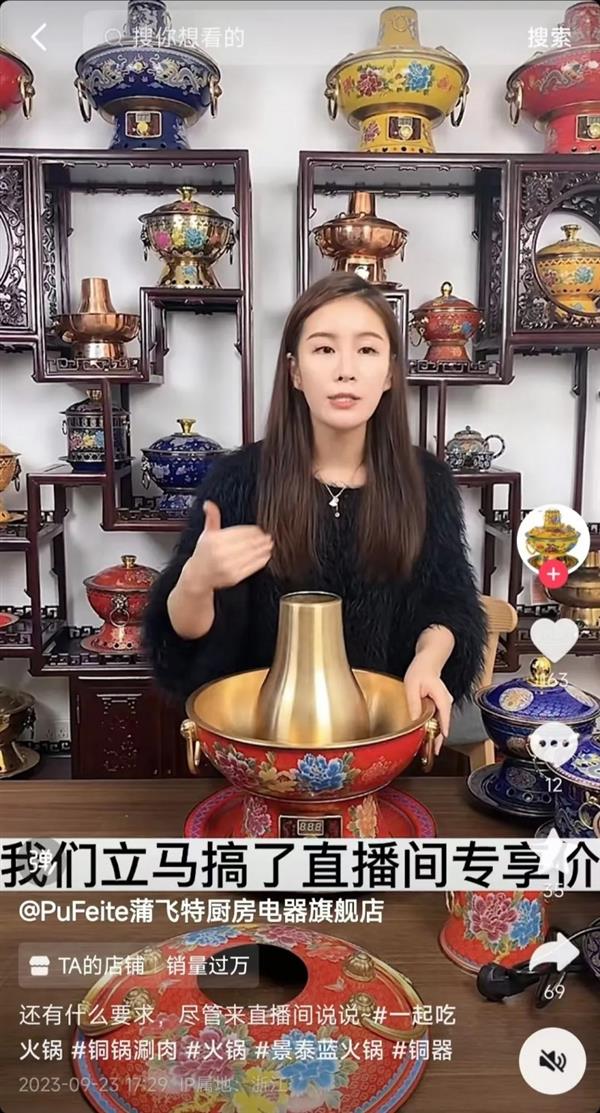 这些视频内容或是穿着古装复刻古人吃火锅的场景,或是分享铜火锅的制造工艺,很快就吸引了不少粉丝围观和求购。