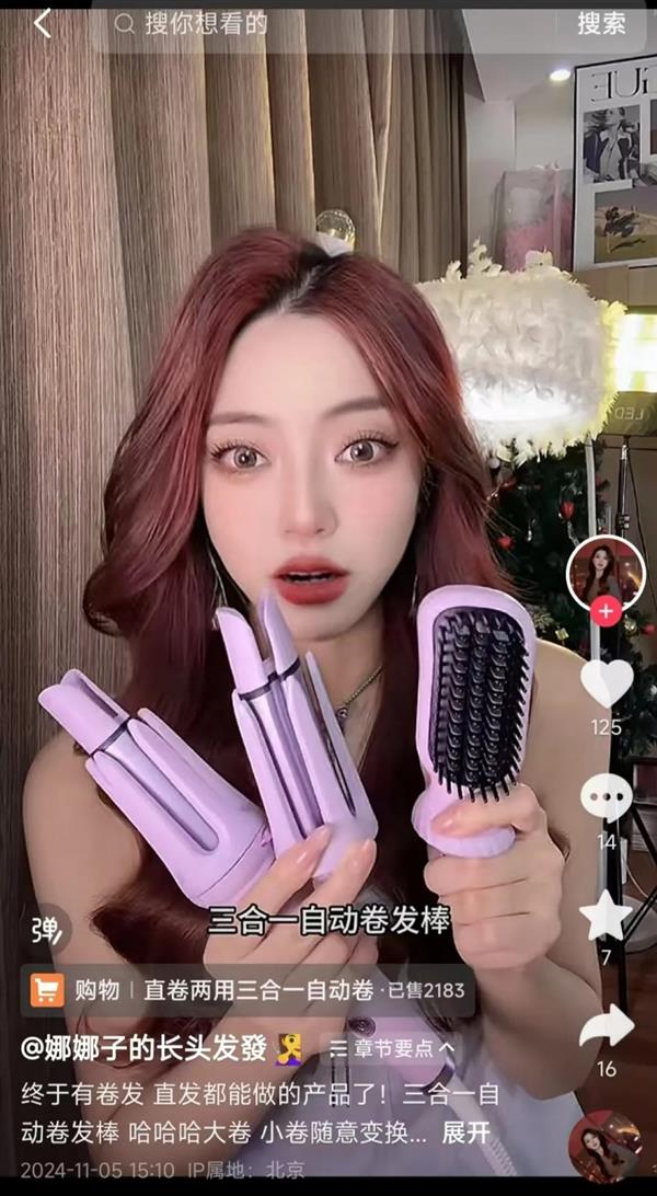 比如2024款的3合1自动卷发棒,傻瓜式操作,双槽设计让头发不会打卷打结,负离子加热的功能则避免了烫伤。