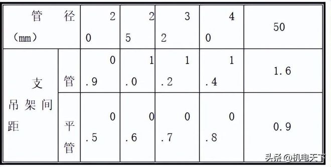 6、 水平安装时,管道支架应安置在接头处。当无支架时,应在管道的接头处设置吊卡。